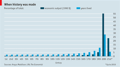 But you can also see right here why we're watching some unprecedented ecological crises unfold on the planet. The human species isn't new and people have been altering the natural environment for a long time, but there are many more people alive currently than has traditionally been the case and the scale of present-day economic activity blows everything in the historical record out of the water.