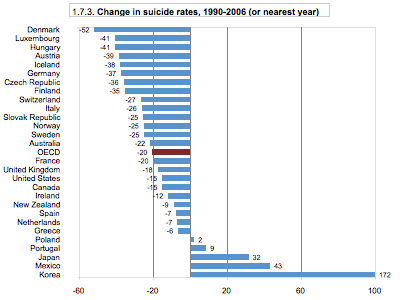 If there's something to be alarmed about, suicide-wise, it doesn't seem to me to be Ludwig Minelli but rather the countries bucking this trend. Off the top of my head, the fact that Korean workers are outliers in lack of leisure time as well as suffering from a skyrocketing suicide rate suggests that maybe they should relax. Research also seems to indicate that economic downturns boost suicide rates among working age people, though not the under-25 or over-65 cohort. So maybe we should be pushing for more robust fiscal and monetary stabilizers! I don't think making the evil eye at Ludwig Minelli is going to end the global recession.