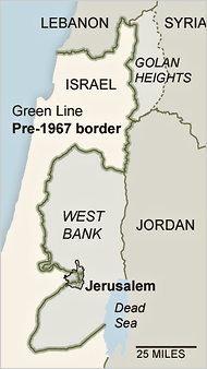 Obama's idea, consistent with the Clinton parameters, is that rather than strict adherence to the cease-fire line, the two sides should negotiate "land swaps" in which Israel annexes some settlement land and in exchange gives Palestine some extra territory elsewhere. But some of this land swapping is going to have to happen right here in the Jerusalem area. The question of the border and the disposition of Jerusalem seem intimately linked.