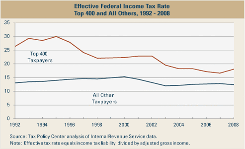 The 400 richest taxpayers in America pay a higher effective income tax rate than do the rest of us, but the gap is small and shrinking according to a new analysis from Rob Williams (via Catherine Rampell):
