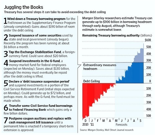 So you get what we have here this week. Extraordinary measures to juggle financial obligations. Here's an illustrative graphic from the WSJ of what that looks like: