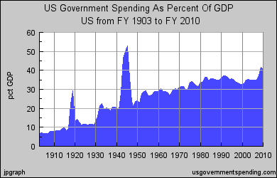 Sarah Laskow observes that the appropriations deal only constitutes the largest cut in government spending in American history if you arbitrarily decide to look at nominal dollars. What really brings spending down rapidly is :