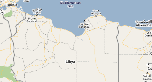 Something to say on behalf of the Libya operation is that I think some of the nervous writing about this I've read has been overstating the difficulty of achieving our war aims. If you look at a map, you'll find that there's literally only one road between the crossroads town of Marsa al-Burayqah and the crossroads town of Ajdabiyah. If Gaddafi's regime doesn't collapse and we end up using western tactical air support to create a rebel safe haven in eastern Libya the operational task would basically amount to controlling just this one road. In the scheme of things that's a relatively simple simple task that it seems NATO could achieve at relatively low cost: