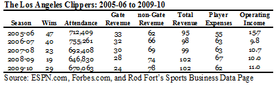 The horror of the NBA, it seems to me, is that it's one of the rare businesses in which a firm that's persistentlyT mismanaged and constantly failing can nonetheless be a profitable business. Take the LA Clippers: