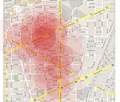 Here on the Prince of Petworth blog is what purports to be a map of liquor stores in DC's Bloomingdale neighborhood, though in fact it proceeds by counting every store licensed to sell beer as a "liquor store."