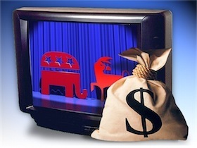 The income of many corporations — Boeing is a good example — depend on government contracts. Tax policy is also important when it comes to setting take-home pay. Then there are rules, regulations, bailouts, backstops, and all the other ways that the government helps structure and shape the economy. And "through gigantic campaign contributions and overall clout," corporations "have enormous influence over who gets to bargain with them." And in the aggregate, of course, the business community spends much more than the unions — in 2010, business groups spent $1.3 billion, while unions spent $93 million.