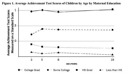 [G]aps arise early and persist. Schools do little to budge these gaps even though the quality of schooling attended varies greatly across social classes. Much evidence tells the same story as Figure 1. Gaps in test scores classified by social and economic status of the family emerge at early ages, before schooling starts, and they persist. Similar gaps emerge and persist in indices of soft skills classified by social and economic status. Again, schooling does little to widen or narrow these gaps.