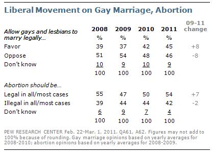 Five years ago, if there were five Supreme Court justices who believed that marriage equality should be the law of the land, they'd still probably have shied away from saying so for fear of issuing a desperately unpopular decision on a hot-button subject. Today, not so much. And with the Obama administration now saying that DOMA should be subjected to "heightened scrutiny" it would seem to follow that all forms of marriage inequity also deserve said heightened scrutiny. Consequently, I think we may actually wind up having nationwide marriage equality sooner than people think as long as Justice Kennedy continues to be sympathetic to gay equity claims.