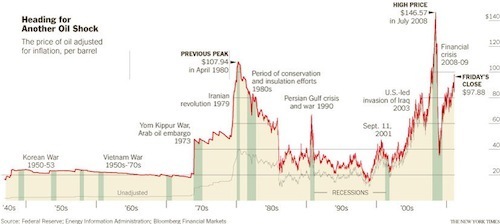 When people talk about the risk posed to the economy by oil price spikes it's worth keeping in mind the fact that there are really two separate threats here.