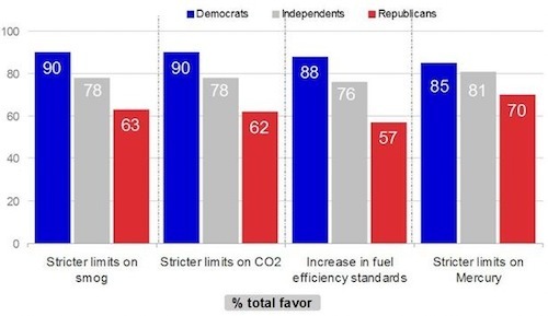 Most policy wonks are inclined to think that carbon pricing is a much better idea than regulating greenhouse gasses under the existing Clean Air Act framework. This has led most media coverage of EPA action to lose sight of the fact that the voting public is enthusiastic about the Clean Air Act and basically all kinds of anti-pollution efforts: