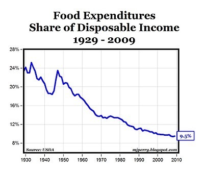 I think there's a lot of waste in our health care sector. That said, I think discussion of health care costs sometimes ignore the fact that something has to go up as a share of GDP. Consider that food as a share of income is shrinking: