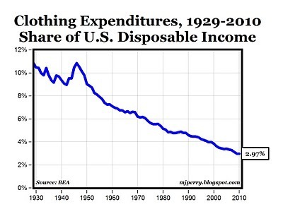 Americans are getting richer, agriculture is becoming more efficient, apparel is increasingly made by Bangladeshis or robots, etc. At the same time, computers and other electronic gadgets are getting cheaper in real terms. And if some things shrink as a share of our income, other things need to grow. The biggest of those things has been health care. And that makes perfect sense. Richer people should be spending our money trying to be healthier. The problem we have isn't so much that the volume of health related spending is "too high" as it is that we're actually purchasing shockingly little in the way of improved health for all that money.