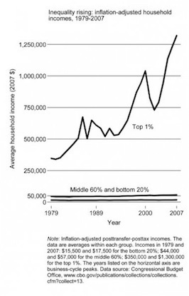I think, however, that I may not have expressed my actual view of the situation very clearly. I think Cowen's argument that the stagnation in question is caused by a semi-mysterious technological slowdown is ultimately less persuasive than the circumstantial Krugman and Hacker/Pierson case that it's ultimately political in origin. But I think Winner Take All Politics often comes across as implying that the political problems here are very narrowly partisan in nature and could be easily remedied with more progressive taxation. The real issues, I think, are closer to Dean Baker's less conventional analysis in The Conservative Nanny State—substantial dysfunctions in the health care, finance, education, and housing sectors of the economy plus loopy intellectual property policy that are conspiring to make growth slower and more concentrated.
