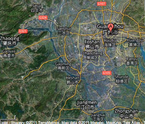Indeed, check out a rough satellite view of the area and you'll see that envisioning the Pearl River Delta as a mega-city seems fairly reasonable: