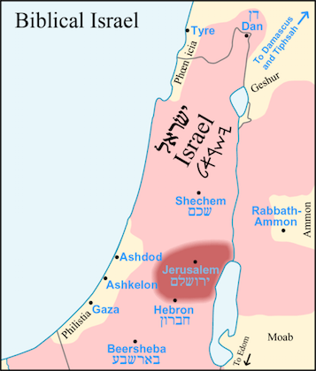 Here's a slightly different stab at the question, again locating substantial swathes of present-day Jordan and Lebanon within the boundaries of Biblical Israel. You'd have to be a crazy person to try to base a 21st century state on these 3,000 year-old maps. But that, it seems, is exactly what Huckabee thinks should happen.
