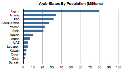 I knew Egypt was the largest population of the Arab countries, but until I looked up the numbers I didn't realize how dramatically the demographics of the Arab world are weighted toward Egypt: