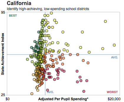 Today my colleague Ulrich Boser is releasing the results from a very important study of "productivity" in America's school districts. The project is complicated, so I encourage people interested in the subject to take a look at the report and the accompanying interactive tools. For illustrative purposes, here's a graph of California: