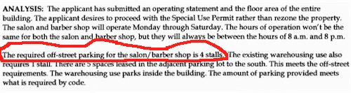 Here's a little slice of life from Omaha (PDF) where city officials are evaluating a man's plan to cut other people's hair in exchange for money in a property he owns: