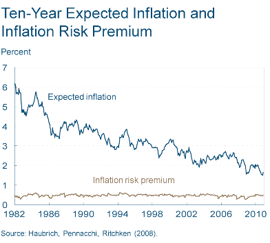 On the subject of targeting the forecast, via Mark Thoma the Cleveland Fed has a nice chart of the evolution of inflation expectations over time: