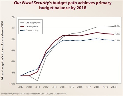 For the longer-term, like all long-term budget plans they need to rely heavily on fairly speculative assertions about health care costs. But I think that if you dig into it, you'll find that OFS offers the least hand-waving on this point of any plan I've yet seen, though that's not to say there's no hand-waving. If you read between the lines of OFS and Rivlin-Domenici you can begin to see the faint outlines of a debate between price controls (OFS) and rationing (Rivlin-Domenici) as a preferred approach to reducing the growth in health care costs.