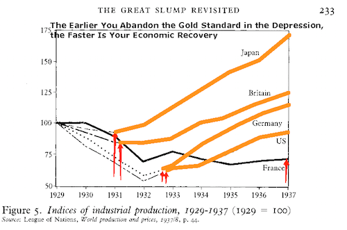 Have countries ever experienced a post-recession return to prosperity in part through currency devaluation? Sure they have. Throughout the Great Depression countries found that only abandonment of the gold standard and currency devaluation allowed for growth to return: