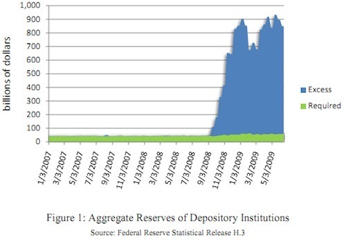 Reader RG sent me a link to a year-old paper from the New York Fed (PDF) which pretty clearly lays out the policy rationale for paying interest on excess bank reserves, and in the course of doing so helps explain why it's a mistake: