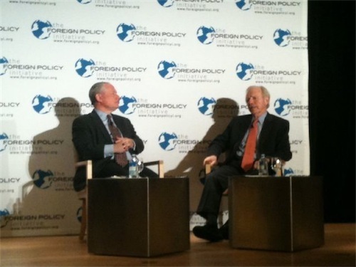 I wasn't able to attend Joe Lieberman's appearance at the neoconservative Foreign Policy Initiative conference this morning, but according to his Twitter feed while chatting with Bill Kristol he remarked: "We can't ultimately succeed in Afghanistan so long as the enemy has safe havens in Pakistan."