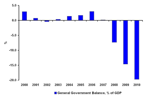 The big deficit reduction deals of the 80s and 90s didn't just happen for no reason. They happened because the large structural deficits of the Ronald Reagan administration were creating serious economic problems. Today we have serious economic problems, but none of them are caused by the deficit. Inflation is below the Fed's target. They can keep rates low no problem. It would be wise and just and moral for the 112th Congress to pass a judicious long-term debt reduction program, but it doesn't seem even remotely realistic. Is there any precedent for a country doing deficit reduction pre-emptively in the way everyone seems to be suggesting we should?