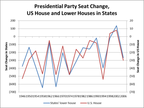 This suggests that swing voters are relying very heavily on some pretty unsound heuristics to decide who to vote for at the state level. The fact of the matter is that the Tennessee State Legislature and the United States Congress deal with some very different issues. To say "I'm fed up with ObamaCare/the Iraq War so I'm going to kick my state senator to the curb" doesn't make any real sense.