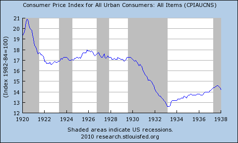But in the 30s, we were mainly talking about ending expectations of deflation, or at most creating expectations of a rise in the price level to where it was before the Depression; remember that even in 1938, prices were well below 1929 levels: