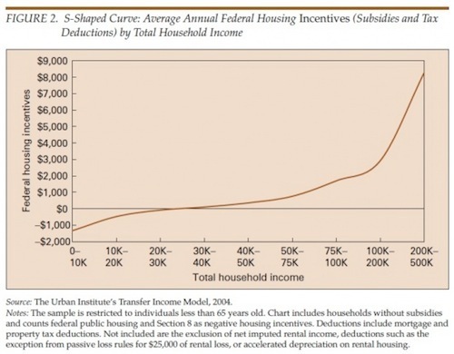 The large-scale subsidies to the housing sector is one of the least market-oriented aspects of the American economy, and as Mike Konczal observes they're also hugely regressive, making it unlikely that the politicians who like to rant and rave about free markets will actually do anything about it: