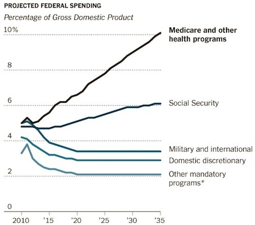 David Leonhardt has an excellent column on how the real problem of the deficit boils down to Medicare and suggests a solution: