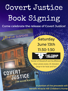 If you're in Greenville, South Carolina, don't forget about the book signing event on June 13th! I'll have plenty of copies of Covert Justice to sell that day. We'll have door prizes, gift baskets, and fun!