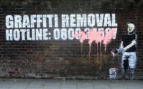 Banksy is a British street artist whose work is subversive, haunting, poignant, knife-sharp, humorous and/or disturbing. It's unrelentingly smart. And--though this seems painfully obvious, even if to me it is the point--he has always done it because he had to, not because he was making things to sell. A lot of it was precisely observant of the institution of commerce, in fact, though one cannot really blame him for the eventuality that its very success in this endeavor has lately made it hugely valuable in the buy-and-sell art world.