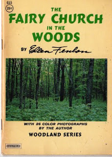 While the rain fell, I read out loud from a set of booklets that had brought magic into my childhood, and sent me out into the woods to see what evidence of fairies there I could find, as had the photographer and author, Ellen Fenlon. Each book cost 29 cents. A Woodland Circus. Signs of the Fairies. The Fairy Church in the Woods. In the pictures, things looked like other things. "We saw some little mayapple umbrellas stuck in the ground because it had been raining earlier." "The bloodroot shows each fairy just how to wrap a leaf around himself to make a nice warm coat." There are many, many orchids pictured--all of them, all of these wonders of nature, photographed in the woods of northeastern Ohio. I don't think there are many orchids left. On the final page, the author's biography: "Ellen Fenlon lives at 945 Hessel Drive in Akron, Ohio. She is helping to save the woods from being cut down so that all the little animals and plants won't be chased out of their homes. That way your children and grandchildren will have a place where they can go and visit them." The year was 1962. I go visit them in these books now.