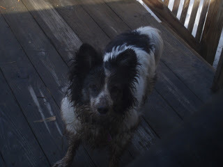 Here at the swimming hole, Nelly is tied on a long line. She ventures out--freedom is mine!--and then she hits the end and feels the implacable rigor of The Tree. She is tethered, an unusual state for this free-ranging dog, because there are people here with food. (And where, I submit, are there people in America who don't sally forth without food anymore? I know we're hardwired as animals to eat whatever food is available, but hasn't this gotten ridiculous? What meal is it that these people are eating at 3:30 in the afternoon--tea? With submarine sandwiches?)Nelly too is wired, programmed, habituated, reinforced, and possibly drawn by supernatural beings to obtain food. Now--and here is the secret that many people don't get--some dogs are born like this, and some aren't. It's not a moral thing, though that's the gloss one hears over and over: "My dog is a good dog. He won't steal food." Ahem. To a dog, as long as there aren't bared fangs in the proximity, anything is fair game. On a plate or not. What is a plate?
