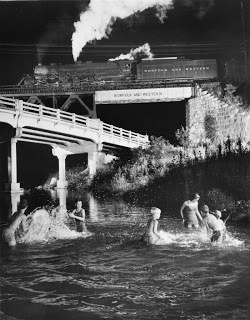 The earliest in my collection was practically literally painted by him, or maybe closer to the physical equivalent of inhabiting a Charles Ives symphony (most probably New England Holidays). My childhood best friend, the daughter of two artists, spent summers at the family farmhouse in Vermont. And sometimes I went there too. For an image to complement the description, refer to the Charles Sheeler photograph previously posted. Shaker austerity. The very paucity of any raucous amusements--mainly, we went outside with our sketch pads, or went blueberry picking up the mountain, or collected fresh fir balsam to stuff sachets, or played Scrabble at night and assembled puzzles when it rained; that was about it--is exactly what made these vacations seem unspeakably rich to my young mind. And then there was the swimming hole. A concrete dam had been built on the brook rolling down the hillside from some cold origin, and the water backed up nine feet deep. We threw ourselves, again and again, screaming at the shock, into the numbing water. I will never forget that time and that place: it is an immersing memory of a private place that seemed there for us alone. The essence of summer, and the fullness of a wet joy. I hope you remember your own. Better yet, I hope you have it still.