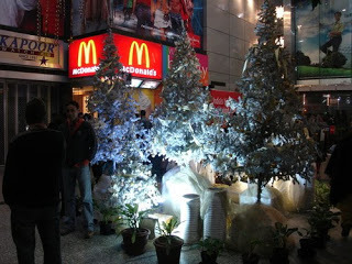 I should have felt slightly sick, slightly guilty. I should have boycotted the relentless commerce, the destructive commerce, the blinding, empty commerce. But I did not. Or at least, part of me did not; another part, counterposed, did. In other words, I am a stone hypocrite. I like my little luxuries, aka unnecessary stuff. I like buying presents for people who also like luxuries. I like shopping at the fancy-foods store (hey, all you really need to live perfectly fine is oatmeal), the one that grew from the seed of the primitive vegetable stand that we used to visit in college. Now it is our area's only source for triple-creme cheeses and European cookies. And instead of bemoaning the loss of an impossibly humble, genuine and real bit of history, I am pleased as punch it's here.