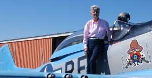 Jean on the wing of Chuck Hall’s modified P-51, ‘Six Shooter’ (2010)