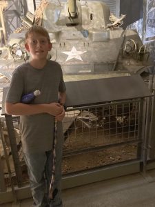 My grandson Daniel, and one of the many tanks.I remember being part of the grade school color guard at Denver’s Stevens Elementary School. At 3:15 in the afternoon, seven of us marched single file to the flagpole. Standing tall – saluting properly – slowly, reverently, we lowered the precious Stars and Stripes. The pride that swelled in me all those years ago returned when I walked the beach and the cemetery in Normandy, France, August 18, 2022. It’s what America is all about.