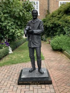 Alf Wight in the Garden at Skeldale HouseAlf, a highly regarded veterinary surgeon – turned author – gave birth to James Herriot. He also created Siegfried and Tristan Farnon, Mrs. Hall, Helen Alderson, Mrs. Pumphrey and Tricky Woo, and all the other creatures, two and four-legged, who live in fictional Darrowby. In doing so, Alf captured the hearts and minds of young and old – readers and television devotees – in the British Isles as well as across the many ponds and oceans that occupy planet Earth. His books about a young vet living and working in England’s Yorkshire Dales, mid-20th century, continue to capture hearts and minds today.