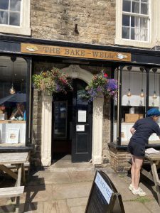 The Delightful Bake-Well ShopUpon arrival in Thirsk, our first visit was to The Bake-Well, a delightful pastry shop where we five sat out front under an umbrella and enjoyed treats (mostly chocolate) dispensed by the delightful woman inside. We drank in the local atmosphere. We got to admire many a neighborhood dog who accompanied his or her master/mistress to the sweet shop. It made us miss our dogs back in Colorado Springs.