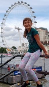 Emy and “The Eye”From there, we set off for Trafalgar Square, the next stop on our walking tour of London. One thing we didn’t do was ride a red double-decker bus. Along the way, we caught views of Big Ben and of the London Eye, the famous Ferris wheel. My granddaughter Emy very much wanted to ride on it. She got her ride the next day. Gramma offered it as an early birthday present. SHE LOVED IT!!!