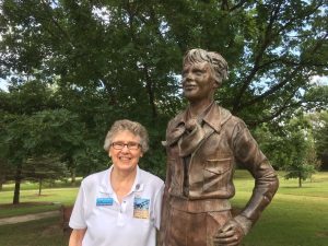 The Author with Amelia Earhart, at The Forest of Friendship, Atchison, KansasThat’s Where I and My Books Come InI gave her the short version of my lengthy and somewhat convoluted WASP and book-writing