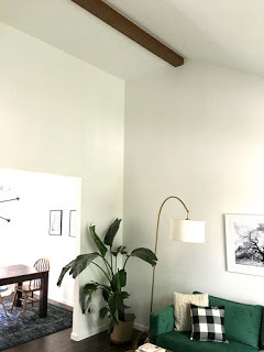 The faux beam was literally the first project we committed to at our fixer upper (it arrived to our old house ON moving day and we put it directly into the rented truck) but it's taken us this long to get the living room around it pretty enough to share!