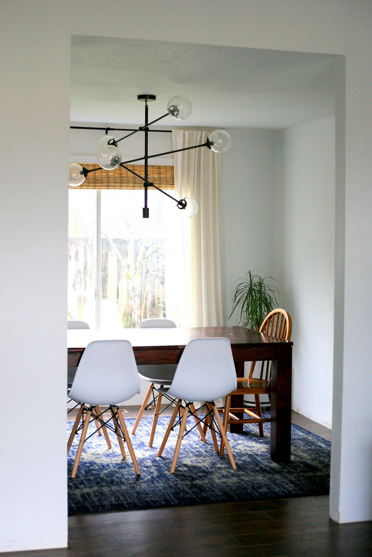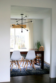 I've been back and forth on our dining room chairs and table, and really just happened on the blue rug we put in here. But the first piece of decor we settled on in this dining room was this light fixture.