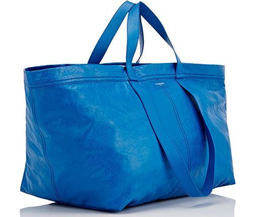 Since we’re on the subject of ridiculously overpriced shit for the rich…Balenciaga has finally made a bag for the richies who want that fresh “just coming from Ikea” look, but don’t want to taint their $3,300 calfskin leather jacket with disgusting polyester straps! Balenciaga’s $2,145 (or 7 Klippan loveseats in Ikea currency) Arena shopping tote looks like Ikea’s 99 cent FRAKTA bag. Well, if Ikea’s 99 cent FRAKTA bag married a rich plastic surgeon, got its plastic skin replaced with fine leather skin, started speaking in a snobby accent and held its nose up to the Swedish meatballs it used to eat. Balenciaga’s Arena bag is basically a new money FRAKTA bag.