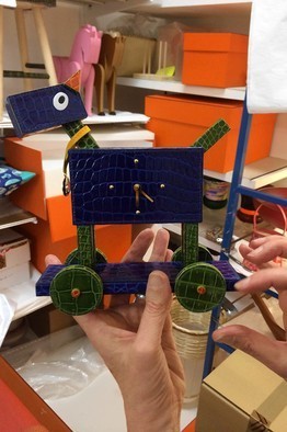 Petit h "expresses the values most dear to Hermès," says Pierre-Alexis Dumas, Hermès's artistic director and Ms. Mussard's cousin. He adds that it remains "faithful to the artisan spirit of the house using exceptional discarded materials to create and reinvent beautiful objects full of fantasy which are unusual."Petit h also allows Hermès to boast—as the company does on its website—"We don't throw anything away." (The company does have other re-use efforts. For instance, scarves with very tiny defects are shredded and used to stuff pillows.) The recycling message reverberates today, but Ms. Mussard attributes the concept of frugality to her mother, who grew up during World War II. "We saved everything," she says. Her mother insisted the family finish yesterday's bread before starting on a fresh loaf. "By that time the (new) loaf was no longer fresh," says Ms. Mussard.Years later, Ms. Mussard would wince as she witnessed defective Hermès products being destroyed so that they couldn't be sold as seconds or on the black market. Ms. Mussard ferreted boxes of useful detritus out of Hermès factories for years. Then she met Gilles Jonemann, a jewelry designer working under his own name who held no reverence for Kelly bags or silk scarves. "I knew nothing about Hermès," Mr. Jonemann says, "except for things I didn't like."When she asked him to work secretly for a year, without pay, he helped her squirrel more rejects out of Hermès factories in the trunk of his car. Together, they created 100 prototypes, many of them whimsical. With a broken teapot, Mr. Jonemann said, "We'll make a lamp." He added wings and hung it so the pot would seem to fly. They made a tall leather-covered camel and named it "Raul."When she took the concept of selling Petit h goods to her family, Ms. Mussard read her written proposal verbatim because she was so nervous to stray from the paper. "I said, I have a project and you cannot say no. I know you all think I'm crazy," she says. The family agreed to test the concept, though she had to find legal means to re-use the previously copyrighted products. (Artists hired by Hermès own the copyright to their designs.) "The lawyers said, "Impossible!" she recalls. She met with artists to seek their permission.These days, there is no more sneaking around. "Now," she says, "the factories save leftovers for me."The artisans were selected by Ms. Mussard to join the Petit h atelier after proving themselves at Hermès's larger factories. One spent 20 years making prototypes for leather collections, another made suitcases, and yet another came from the repair department, where he learned to identify design flaws. There are silversmiths, and a seamstress who is learning leather work. The objects created at Petit h must be made to Hermès's standards. When asked if a thin leather shelf was wrapped around cardboard, Ms. Mussard replied, "No, it's Hermès. We never use cardboard."