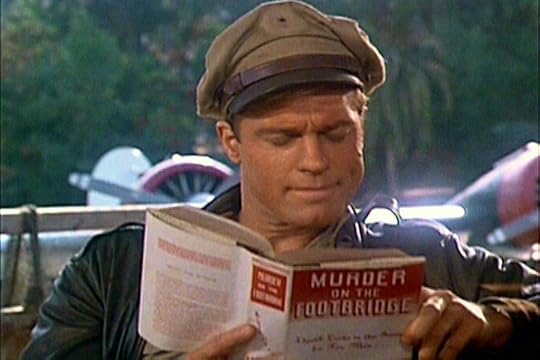 1938--TALES OF THE GOLD MONKEY--"The Sultan of Swat"--Caeric J ArcLight reports: Jake Cutter reads "Murder on the Footbridge" by Isobel Sedbusk. This book is from the 1941 Hitchcock film SUSPICION. It also apparently shows up on a bookshelf in the 1962 film THE NOTORIOUS LANDLADY. I haven't seen SUSPICION so I don't know if Jake *should* be reading it in 1938 but it wouldn't be the first instance where time in the Monkey-verse didn't work the way it should. In this scene, Corky is sitting next to him reading a Superman comic from 1941. [Episode 11]