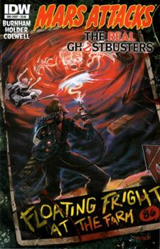 MARS ATTACKS THE REAL GHOSTBUSTERS (IDW)Release Date: January 16, 2013 (Setting is 1988, during the run of the Now Comics Real Ghostbusters series)Series: Mars Attacks; GhostbustersHorror Crosses: Zombies vs. Robots; Chew; Buffy the Vampire Slayer; War of the Worlds (radio)Non-Horror Crosses: Popeye; KISS; Transformers; Miss Fury; Opus; Judge Dredd; Star Slammers; Madman; Strangers in Paradise; Rog-2000; Cerebus; RomThe Story: The Ghostbusters travel to Grover’s Mill, New Jersey to bust the ghosts of the Martians from the 1938 invasion, and encounter a different group of Martians.Notes: The IDW Real Ghostbusters seems to be set in the late 1980s based on most evidence. This story was part of a major company wide crossover, but unlike DC or Marvel, IDW has mostly licensed properties. Rather than have them coexist, they have one story take place over a range of dimensions. Thus, the Ghostbusters and War of the Worlds links are both to the Horror Universe, but all the other above listed crosses come from alternate realities in the Horror Multiverse. The premise is that these Martians invaded a series of realities. Note that of the above, only Ghostbusters, Zombies vs. Robots, Popeye, Kiss and Transformers actually had comic stories published. The other crossovers come from extra covers that had no accompanying stories, but were still considered to be valid parts of the overall invasion. The Buffy cross comes from one of those covers, for Mars Attacks Spike. This is a cross with the divergent Season 8 timeline.